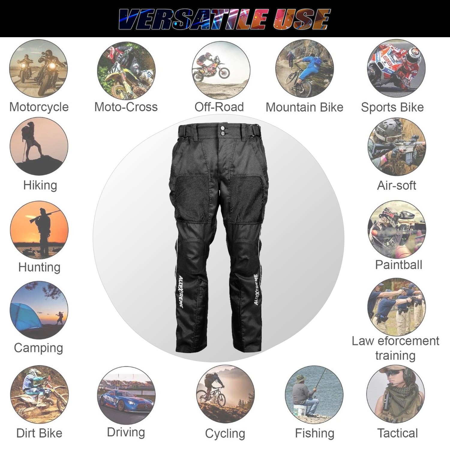 Allextreme AIR EVO Motorcycle Riding Pants Impact Protection HDEVA Protectors 300GSM Mesh-Fabric for Men All-Season Outdoor Activity Universal Fit (Black, M)